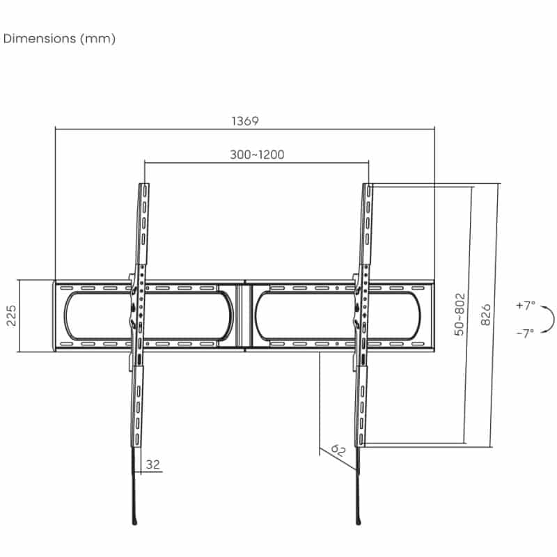 Supporto inclinabile a parete per TV da 37″ a 140″ – max. peso supportato 125 kg, inclinazione +/-7° , Vesa Max. 1200×800